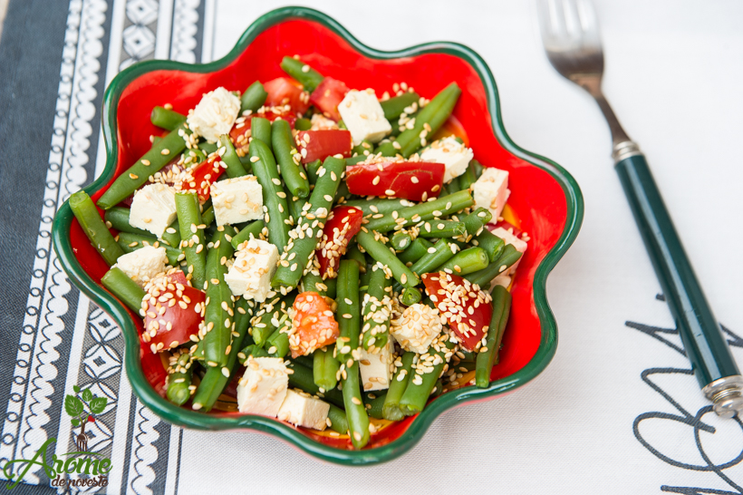 Salata de fasole verde cu susan se pregateste repede si este si foarte gustoasa. Combinatia dintre fasole verde, susan tras la tigaie si tofu mi se pare extraordinara.
